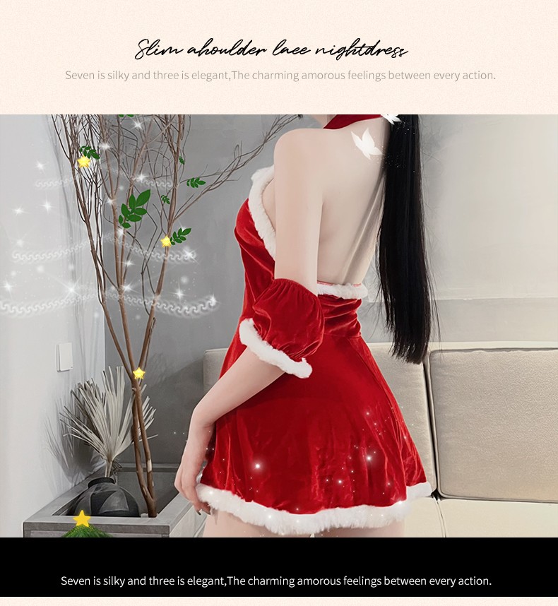 - Product Name: Sexy Christmas Lingerie For Women Santa Babydoll Chemise Red Costume with 4PCS Garters Belt